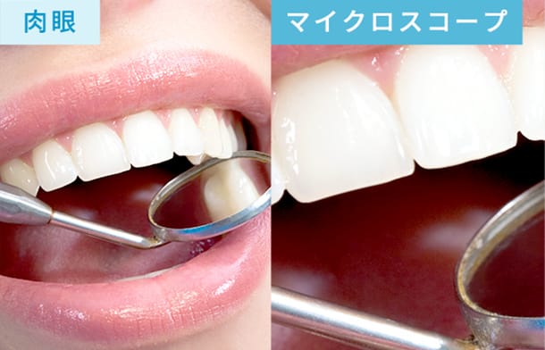 マイクロスコープ視野を拡大することで、より精密な治療が行えます。細かい歯根の治療や審美的治療に対して、特に力を発揮します。