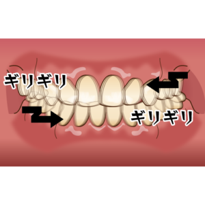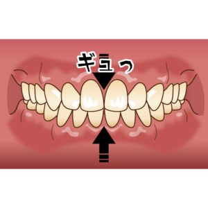 歯ぎしりは、上下の歯を横や前後にギリギリと動かすことです。食いしばりは、上下の歯を強く噛みしめることです。この両方が混在することもあります。