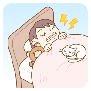 睡眠中の歯ぎしりは、深い眠りから浅い眠りに移行するタイミングで起こるといわれています。大人の場合では、無呼吸などの睡眠中の異常を脳が感知し、覚醒を促すために歯ぎしりを起こさせている可能性もあると報告されています。