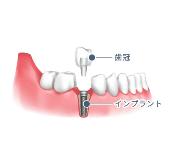 奥歯に1本埋入して、白い被せ物をした場合
