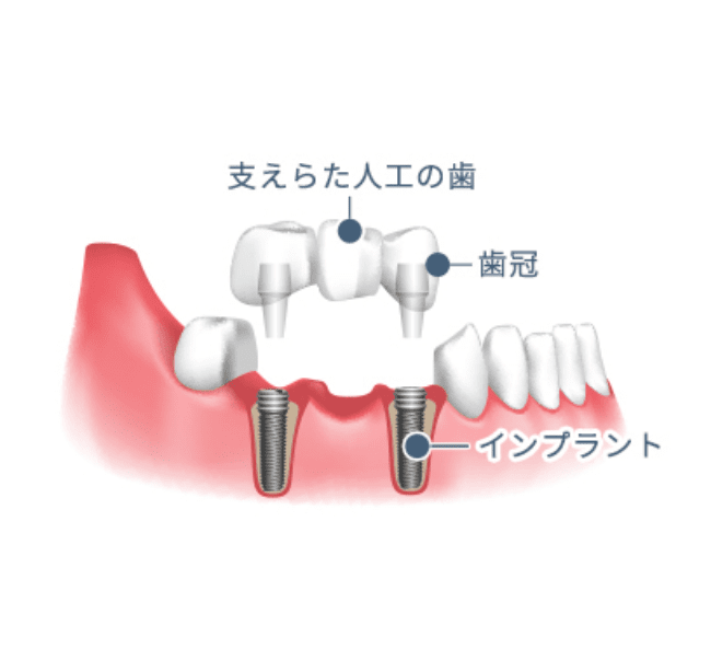 奥歯に2本埋入して、上部構造(ブリッジ)を3本ブリッジにした場合