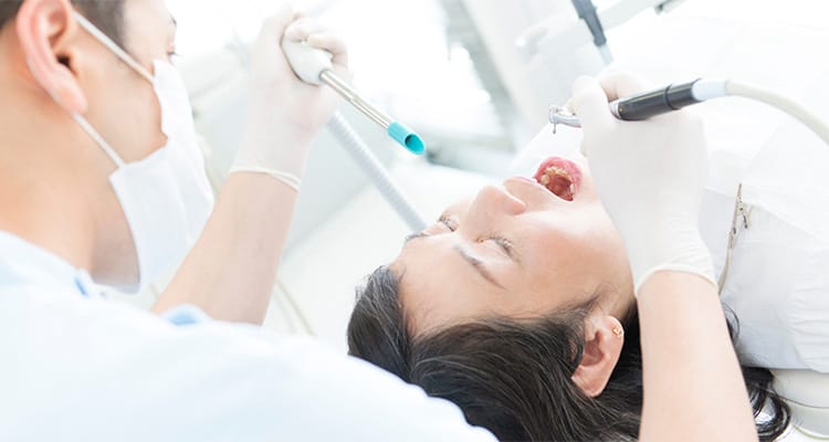 ルートプレーニング歯周病の中度の症状では、歯茎の奥に見えないところまで、歯垢や歯石が付着しているため、スケーリングと合わせて「ルートプレーニング」という処置を行います。歯周病にかかっている歯質の除去もできるため、歯の根から表面までつるつるできれいになります。また予防にも効果があります。