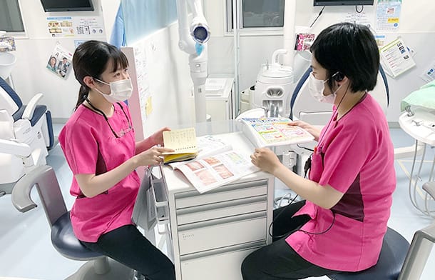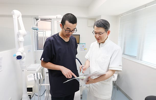 歯科医師、歯科衛生士ともに担当制なので、一つひとつ確実に技術を身につけることができます。また、毎日の終業時にドクターミーティングがあり治療計画立案や治療相談をすることができます。